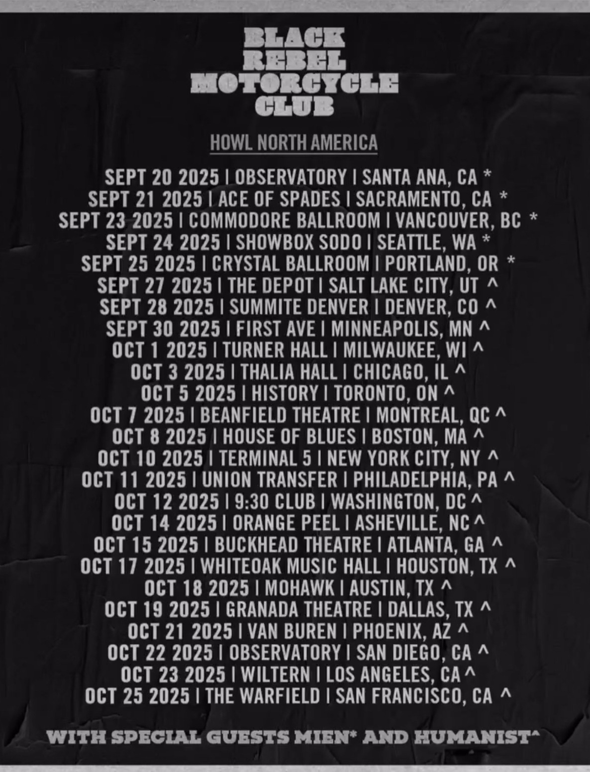 Jimmy Gnecco of (Ours) will be singing with Humanist as they join Black Rebel Motorcycle Club on this tour for the select dates. TOUR DATES...